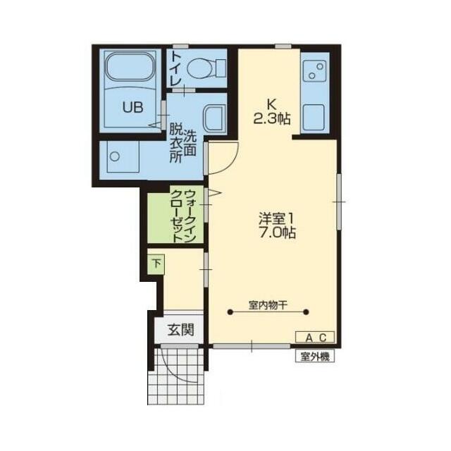| 間取り | 1K(K2.3 洋7) | 主要採光面 | 西 |